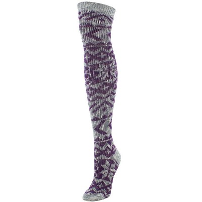 Memoi Snowflake N' Stripes Cotton Blend Over The Knee Socks