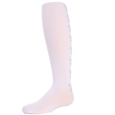 Memoi Sweet Blossoms Girls Sheer Floral Lace Pantyhose White 12-14