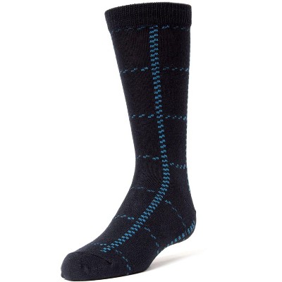 Memoi Windowpane Plaid Boys Cotton Blend Dress Socks