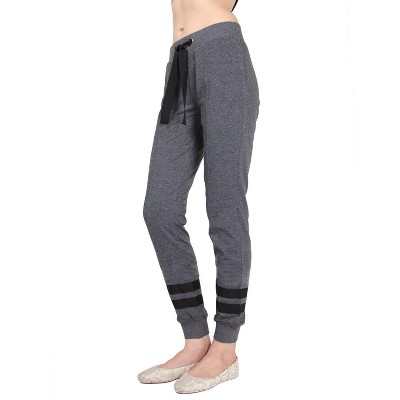 Memoi Women's Cotton Blend Jogger Pants with Contrast Ribbon Stripes Charcoal M