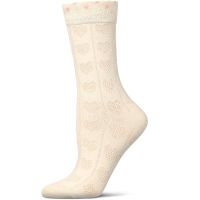 Memoi Women's Embroidered Heart Striped Crew Socks Ivory 9-11 - 1 of 2