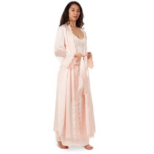 Memoi Women's Lace Trimmed Robe - 1 of 4