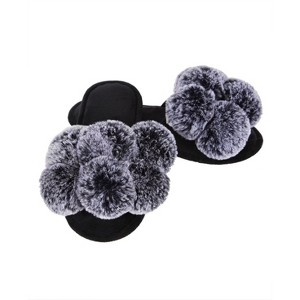 Memoi Women's Luxe Pom-Pom Memory Foam Plush Slippers - 1 of 4