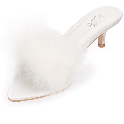 Memoi Women's Mona Marabou Hard Sole Slender Heel Slipper