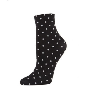 Memoi Women's On The Dot Polka Double Stretch Anklet Sock Black One Size - 1 of 2
