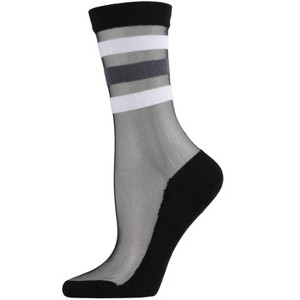 Memoi Women's Reverse Terry Stripe Sheer Cotton Blend Crew Socks - 1 of 4