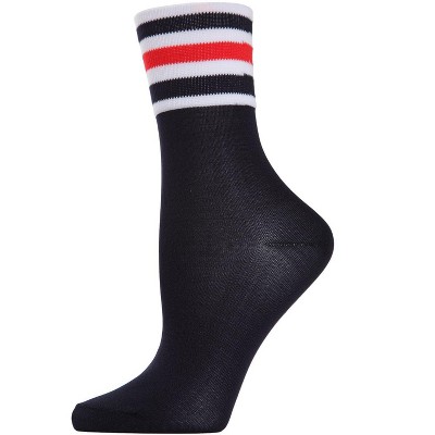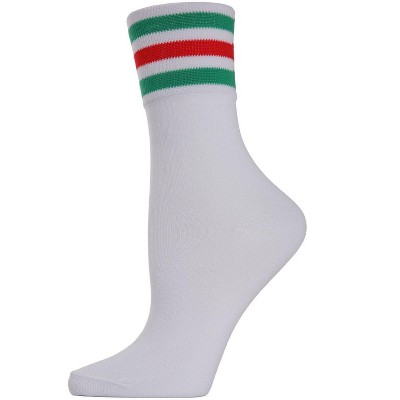 Memoi Women's Sheer Multicolor Striped Cuff Crew Socks