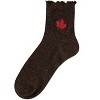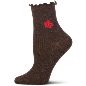 Memoi Women's Sparkly Ribbed Lettuce Edge Embroidered Leaf Crew Sock Java 9-11 - 1 of 4