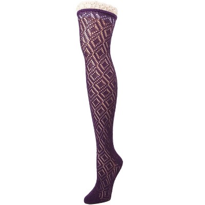 Memoi Zipper Pattern Women's Cotton Blend Over The Knee Sock - 1 of 2