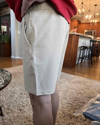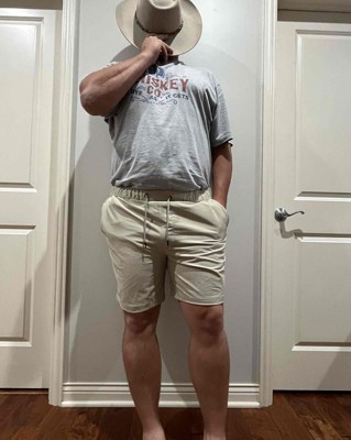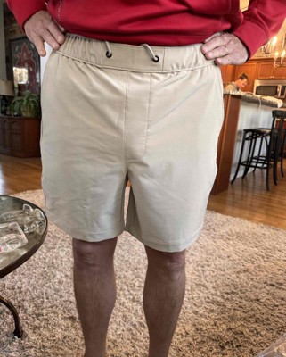 Elevate your casual ensembles effortlessly with these 7-Inch Regular-Fit Tech Pull-On Shorts from Goodfellow & Co™. These regular-fit shorts made from midweight woven fabric with four-way stretch make a comfy staple for everyday wear. Hitting above the knee, they're designed in a light taupe shade for easy coordination with a variety of casual looks. The front drawstring fastening offers a secure fit, while the side pockets and a back patch pocket provide space for your everyday essentials.