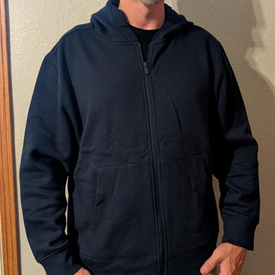 This zip sweat hoodie is comfortable and a great fit - the sort of one would expect from a Target brand. It's well constructed and will hold up well to multiple washes. Fit is true to size. Purchase with confidence.