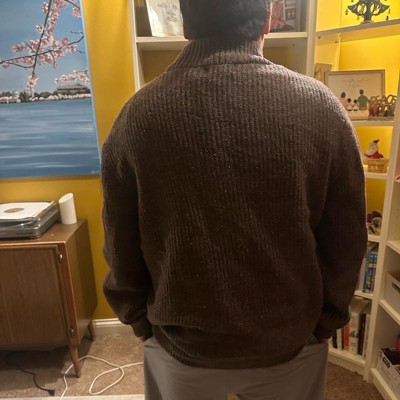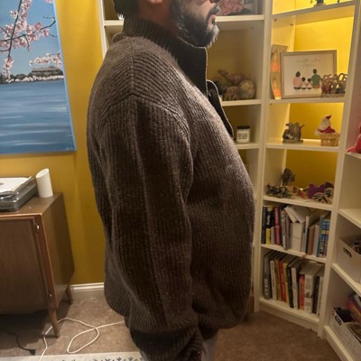 [This review was collected as part of a promotion.] Talk about comfy cozy. This sweater is the ultimate cozy piece. I’m 5’10” and 190lbs wearing a size large. this sweater is relaxed, and very stretchy. The material is medium thickness with lots of warmth. this would look good worn casual with a pair of jeans and brown shoes, or dress it up with a pair of dress pants and wear to all of your holiday parties. This is a good quality sweater and will last for many years.