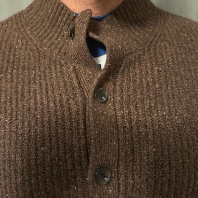[This review was collected as part of a promotion.] My Husband is pictured her wearing a size large, which is his true to size fit and overall this fit him perfectly. The sweater has a lot of stretch as well as softness, so there was definitely room for a shirt underneath the brown color will go with just about everything from denim to khaki pants and overall, I love this paired with a pop-up color underneath overall it is well-made and we highly recommend this sweater