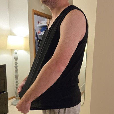 [This review was collected as part of a promotion.] I am 5 foot seven and wear size L/XL. This is a XL top traditional men’s tank top. Cotton blend in black. This tanked up does have a wider shoulder strap so it’s not like an undershirt but a casual tank top. This could be worn to the beach for athletics or just out casual on a hot day. It is true to size for an XL material fills good on the skin, soft comfortable also great for just lounging around in the house I received an incentive to write this review.