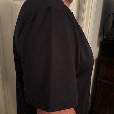 [This review was collected as part of a promotion.] This men’s size medium shirt fits true to size. It has short sleeves and a crew neck. The fabric is a very soft performance fabric. The fabric is not too heavy it is more of a midweight. It comes in a solid black color. This shirt can be worn casually or for any activity. It is a good layering shirt as well. My son thought it was very comfortable. It is a great quality for a great price. I received an incentive to write this review.