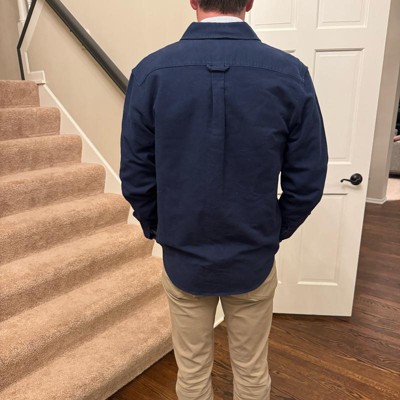 Update your casual wardrobe with this Holiday Shirt from Goodfellow & Co™. Boasting a cotton-recycled cotton blend woven construction, this long-sleeve shirt offers all-day comfort, while the below-waist length gives you the option of wearing it tucked in or untucked. Designed in a solid hue, it features a button-front design, while a collared neckline and a chest flap pocket lend touches of classic style.