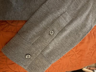 This shirt is made from a mid-weight fabric that doesn't feel heavy on. It doesn't wrinkle easily. The fit is a little on the larger side, but not so big that it feels like he's wearing a tent. It has just enough room to be comfortable, albeit slightly oversized from his regular medium. This will be a great wardrobe addition for the fall, and even into the winter, as my husband gets hot easily, and often opts for lighter ling-sleeved shirts in the cooler months.