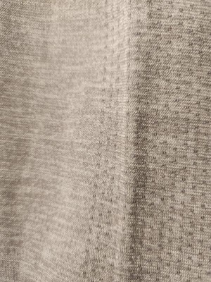 This Men's Long Sleeve Seamless T-Shirt from All In Motion in Heather Gray is pretty comfortable and feels light but its not quite as light or as breathable as other sun shirts or hoodies I have. The seamless design is nice and and gives a unique look, but the look of all the holes is a bit off putting for my tastes. It washes well and doesn't hold body odor like some other shirts made of similar materials, it seems relatively water wicking as well which is good.