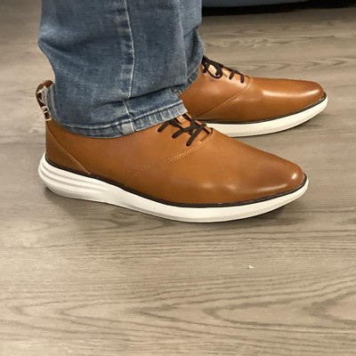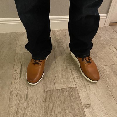 Embrace a modern, elevated look at work and beyond with these Luis Hybrid Oxford Sneakers from Goodfellow & Co™. These hybrid oxford sneakers showcase a cognac-color polyurethane upper and white TPR outsole. Featuring a classic lace-up design, these medium-width sneakers include a cushioned footbed and memory foam insole for extra comfortable wear.