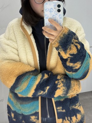 Love this fun Sherpa zip shirt/jacket. Great fit and fun design. Lots of compliments. It is too lightweight to wear alone in very cold weather but it is perfect for California winter weather.