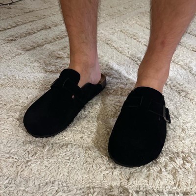 Upgrade your footwear collection with these Oswald Clogs from Goodfellow & Co™. These closed round-toe suede clogs feature a contoured footbed and leather upper to hug your feet in comfort throughout the day. Designed with an adjustable buckle closure on the top for a snug fit, these slip-on clogs makes a perfect addition to your loungewear collection.