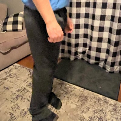 [This review was collected as part of a promotion.] My husband was trying on a size 30 x 32 which is typical for him. Overall, he is five foot eight inches and the trousers were the perfect length. Further it was a little tight around the waist. If you zoom into the trouser, you can see a little design which honestly makes it look like it was made with superior fabric. It did not itch or feel warm, so he could definitely wear it indoors at work.