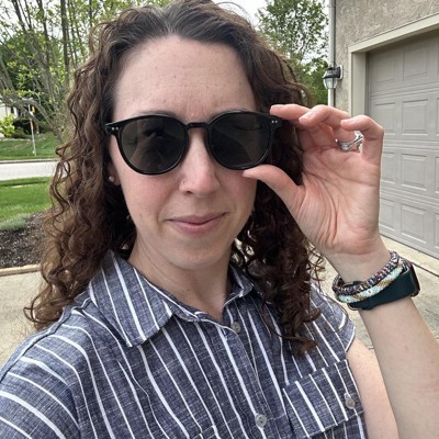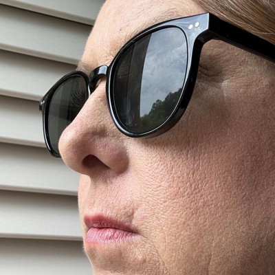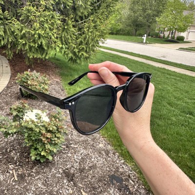 Add a classy touch to your everyday looks with the Plastic Round Sunglasses from Goodfellow & Co™. These black sunglasses are designed in a round shape with UV protection feature lenses to help keep your eyes protected from harmful sun rays. Made with a plastic frame for a lightweight feel, these round sunglasses fit narrow faces.