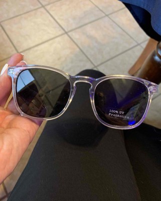 Elevate your everyday look with these Plastic Square Sunglasses from Goodfellow & Co™. The plastic sunglasses feature a clear square frame with green lenses for an on-trend look. The lightweight frame sits comfortably on your face while UV protection helps keep your eyes protected from harmful sun rays, making these glasses a sunny day accessory you'll feel good about wearing.