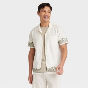 Men's Short Sleeve Embroidered Button-Down Shirt - Goodfellow & Co™ Cream - 1 of 3