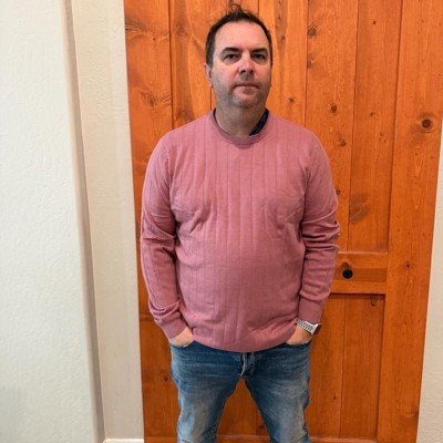 [This review was collected as part of a promotion.] This pink knitted jumper looked excellent on my husband. It is eyecatching and perfect for Spring. It is also available in Cream and the sizes range from Small to XXL. My husband is wearing the size XL and it fitted him perfectly in the body and arms. He is 5ft 11 tall and it goes well with jeans or shorts.