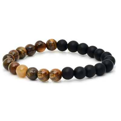 Men's Steel Art Black Lava and Brown Tiger Eye Beads Beaded Bracelet (8.5")