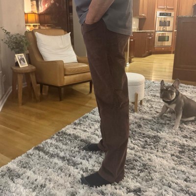 [This review was collected as part of a promotion.] My husband usually wears a 34 x 32. He is wearing 34 x 32 in these pics. Around the waist the fit was great but the length wise it was too long. The quality & material seemed like it would be good long term. I really liked the Corduroy material in this brown color. I think this would look good for fall family pics if worn with a dress shirt. Over all we liked this product. I recieved an incentive to write this review. I received an incentive to write this review.