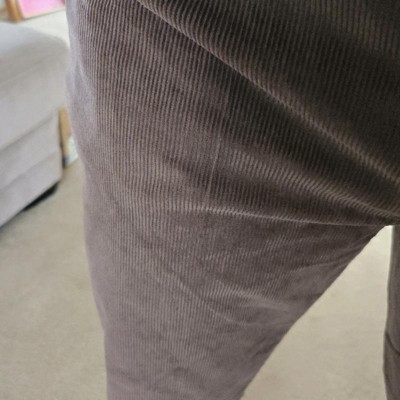 • A: These corduroy pants are designed with a mid-rise style for a comfortable fit.
