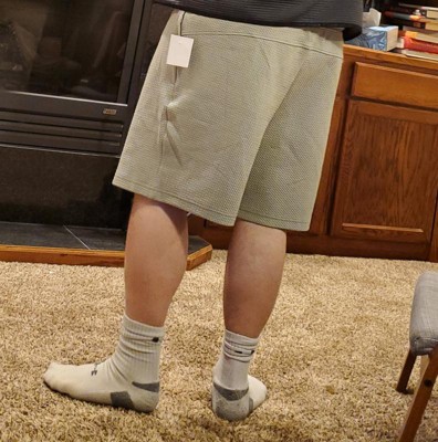 My husband really likes these shorts! The sage green color is just enough to be neutral still while not being boring. The textured material is quite interesting and really adds to the overall look of these shorts. I find they run slightly large but do have a tie to adjust them. Love that they have pockets