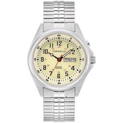 Bought this watch for my husband for a basic work watch. He really likes the watch except the band is a little tight on him. He has stretched it out a bit and now it fits fine. He has a 7. 5" wrist. If your wrist is bigger than 7. 5 this will probably be to tight for you.