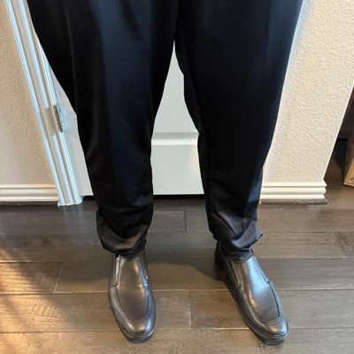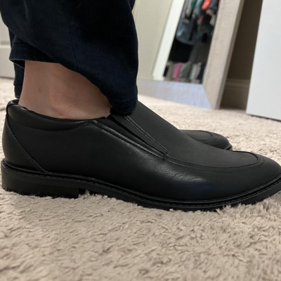 These Toby Dress Shoes with Memory Foam Insole from Goodfellow & Co™ are a fashion-forward functional wardrobe staple. Boasting a memory foam insole, soft lining and TPR outsole, these medium-width shoes are set on a 1.5-inch block heel for a sleek look. The black faux leather lends a classic, refined look with any dress, while the slip-on style allows easy on and off.