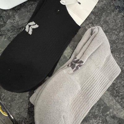 Three-pair pack of quarter crew socks in a tonal shade offer versatile wear with sneakers, casual shoes or even low-cut boots. Made from a moisture-wicking, midweight knit fabric blend of recycled polyester, nylon, polyester and spandex to help keep your feet cool, comfy and dry. Smooth toe seams, arch support, reinforced heel and toe, and zone cushioning round out the comfortable fit.