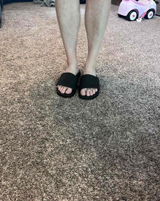 [This review was collected as part of a promotion.] We bought these basic black slides to use for sports in and out of cleats. We have ordered our typical size which is a men’s size 9 and you can see they run quite small. My son did say that they were comfortable yet. They were not very cushy like a different brand maybe. Make sure if you order your size up and realize they are made of a nice plastic type material that can easily be wiped down and washed as needed. This item Felt too short and the width Felt too narrow. I received an incentive to write this review.
