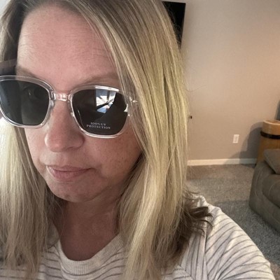 [This review was collected as part of a promotion.] My husband is wearing these crystal frame sunglasses by Goodfellow. He really liked them as they were a little heavier plastic around the frames. The arms has a tortosie look to them which makes them unique. These are 100% UV protected for the sun so perfect for any sunny day walking around, hanging by the pool or being at the beach. These fit my husband well and did not fall down his nose. I received an incentive to write this review.