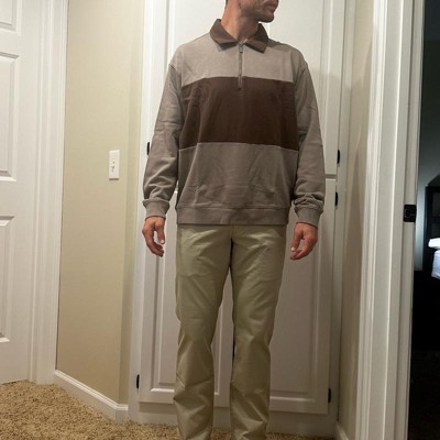 [This review was collected as part of a promotion.] I bought this three-quarter zip sweater for my husband in his usual size of extra large. The fit was good and the arm sleeves and length were plenty long. The material was soft and comfortable, but I did not like the look. The colors looked faded for a new shirt. if it came in more color options that weren’t so worn looking, we would probably purchase it. Because of the color choices, we will be returning this item. I received an incentive to write this review.
