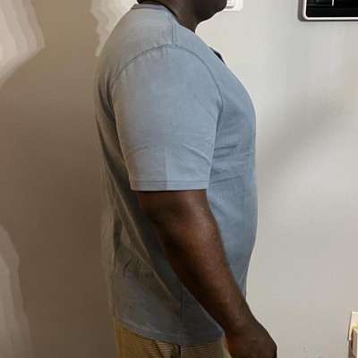 [This review was collected as part of a promotion.] I purchased this short sleeve shirt in a size extra large and I am around 185 pounds. I was really impressed with the look and feel. The fabric is on the heavier side, similar to other pieces I’ve tried and it gives it a nice, sturdy feeling – it is definitely not a lightweight shirt. It would be better suited for cooler weather or layered looks. The blue color is nice and it would pair well with jeans or chinos. Fit wise, the standard cut is comfortable, and it is not too tight; overall, it is a solid T-shirt. I received an incentive to write this review.