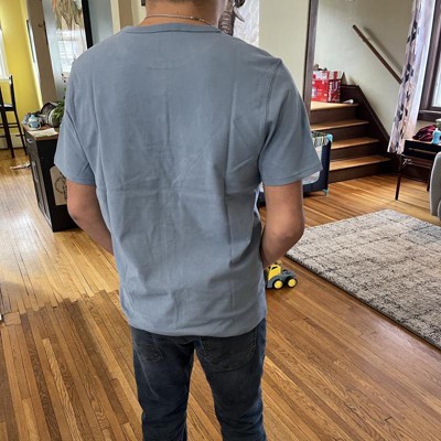 [This review was collected as part of a promotion.] I purchased this short sleeve shirt in a size extra large and I am around 185 pounds. I was really impressed with the look and feel. The fabric is on the heavier side, similar to other pieces I’ve tried and it gives it a nice, sturdy feeling – it is definitely not a lightweight shirt. It would be better suited for cooler weather or layered looks. The blue color is nice and it would pair well with jeans or chinos. Fit wise, the standard cut is comfortable, and it is not too tight; overall, it is a solid T-shirt. I received an incentive to write this review.