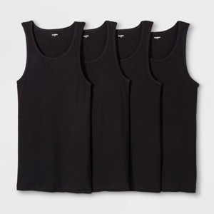 Feel great throughout any season with this Pack of 4 Ribbed Tank Tops from Goodfellow & Co™ in your wardrobe. Made from a 100% cotton fabric for comfort, this pack of black tank tops features a classic scoop neckline that makes for an easy layering option under your jackets, or T-shirts or button downs, or you can wear it alone during the warmer temps. Perfect for pairing with any bottoms, from shorts to joggers to jeans, this ribbed tank top set makes a great wardrobe essential that keeps you looking sleek while helping you maintain breathable comfort throughout your day.