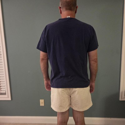 [This review was collected as part of a promotion.] My husband is 5 foot 9 inches tall, weighs approximately 195 lbs, and tried on the size large in these five inch elevated pull on shorts from Goodfellow & Co. He really likes the fit of these shorts a lot! They fit like his other large shorts- he would say they fit true to size. I like the design with the little eyelets all over. He says they are very comfortable. Great price for a nice quality pair of shorts! I received an incentive to write this review.