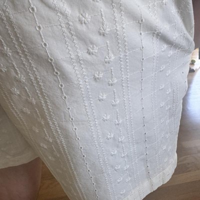 [This review was collected as part of a promotion.] I grabbed these shorts for my father before I noticed the actual detail on them. I did not pay close enough attention to that when ordering I just was looking for a white pair of shorts. I opened these up and I immediately thought they were women’s. The embroidery on them, and actually the holes itself make them look very feminine. Definitely not the style we are going for. My dad typically wears a size large and that’s what these are and they are kind of baggy. I think if this is something you’re willing to try, you might want to size down. I received an incentive to write this review.