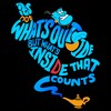 • Strut your stuff with this stylish new men's hoodie that is perfect for every occasion! Featuring an awesome graphic of the iconic Genie with his body made out of the text: "It’s Not What’s Outside but What’s Inside That Counts" in themed lettering.