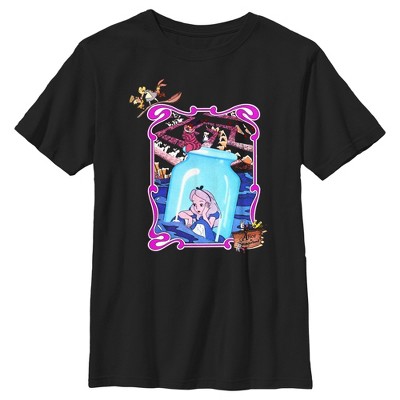 Hop down the rabbit hole and through Tulgey Wood to find your favorite officially licensed style from Disney's Alice In Wonderland Alice In Bottle Mirror Poster Men's Graphic T-Shirt! This unique tee features a sad Alice inside a bottle floating down a river of tears, with small graphics of Cheshire Cat, Hatter, and March Hare printed across the front. You'll be "Mad as a Hatter" if you skip out on this apparel, so grab one today!