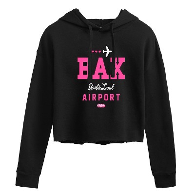 Barbie the Movie - BAK - Barbie Land Airport - Men's Crew Neck Fleece Pullover - Step into the glamorous pink world of Barbie with our officially licensed graphic garments for the fashion-forward! Whether you dream of being a fashion designer, a mermaid princess, or a world-traveling explorer, our garments bring Barbie's world to life with vibrant colors and playful prints. Crafted with quality materials and attention to detail, each piece ensures comfort and durability for all-day play. Express your unique sense of style and imagination with our exclusive Barbie graphic apparel!