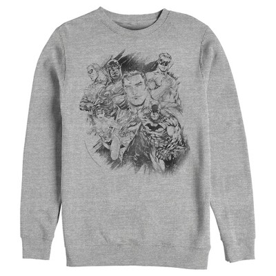 Men's Justice League Hero Sketch Collage Sweatshirt