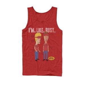 Next time you stop by Burger World, bring the Beavis and Butt-Head Work Sucks Red Tank Top. A distressed print on the front of this funny red Beavis and Butt-Head muscle tee reads "Im, Like, Busy!" above Beavis and Butt-Head in their Burger World uniforms.
